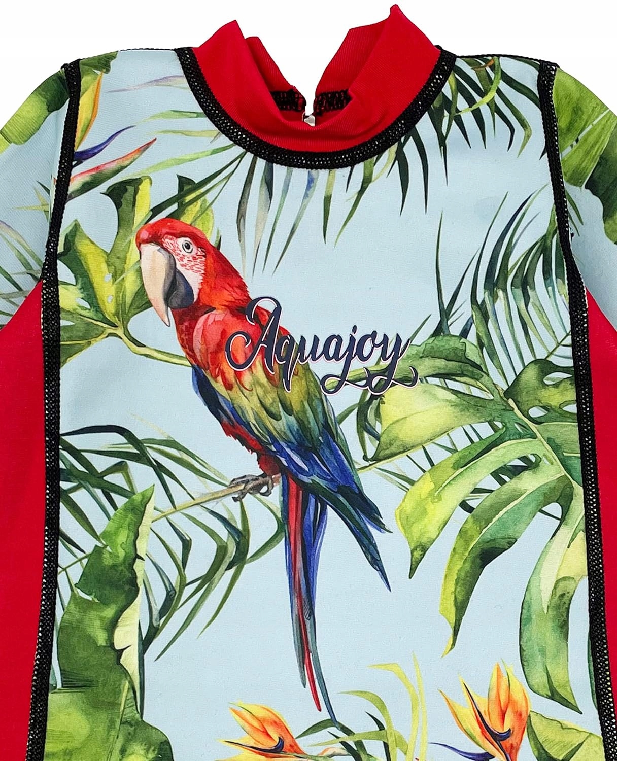 - Теплий суцільний купальник із двостороннім дизайном для немовлят має два варіанти кольору/візерунка: класичний нейтральний колір і надзвичайно веселий тропічний дизайн з іншого боку.