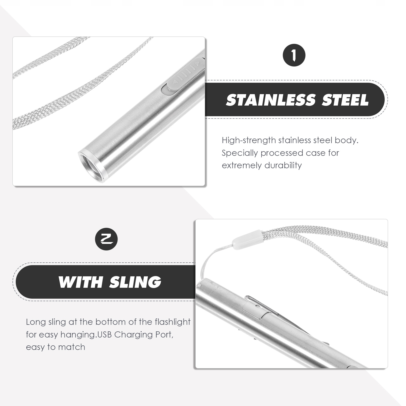 1 x Перезаряджуваний світлодіодний ліхтарик USB із нержавіючої сталі для медсестер для студентів-медиків