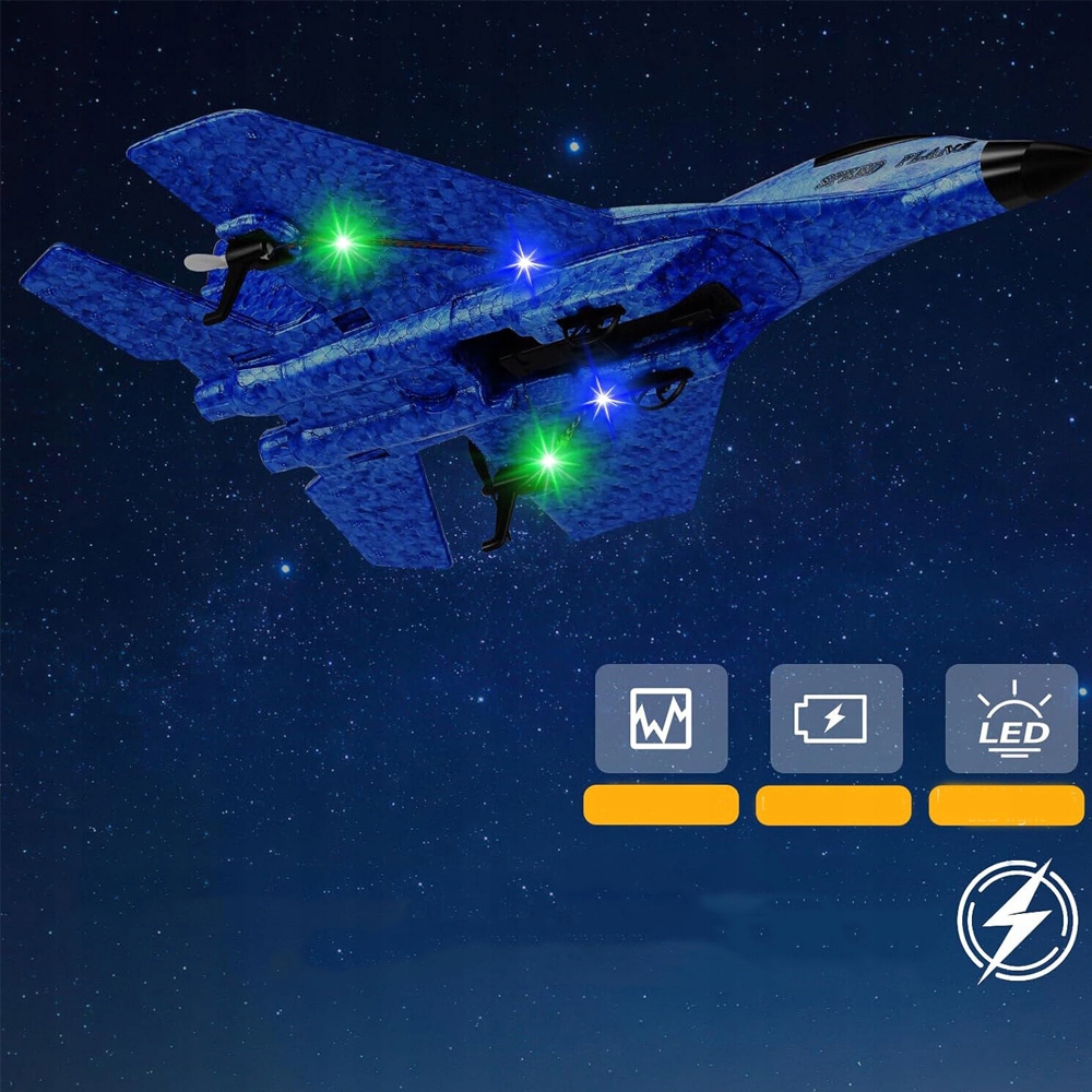 ⭐Пульт дистанційного керування 2,4 ГГц і вбудований гіроскоп. Після кількох тренувань навіть діти та новачки зможуть насолоджуватися польотом. Водночас ми оновили літак із сигналізацією про низький рівень заряду батареї та водонепроникною конструкцією, яка зменшує ймовірність втрати літака вночі під час польоту.