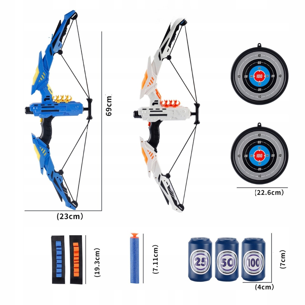 • Елементи: лук, м’які дротики, мішень (залежно від набору)