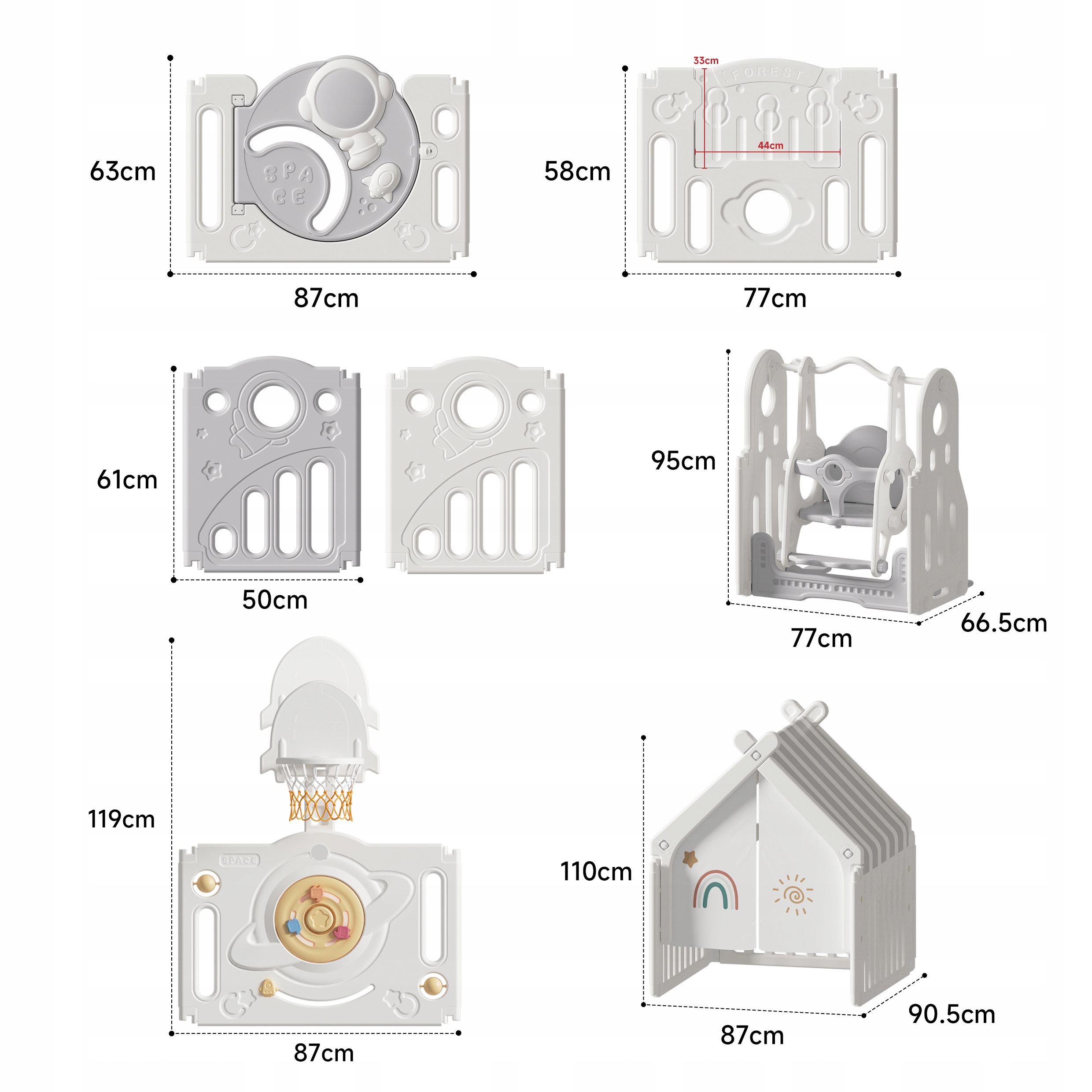 - Набори можна комбінувати, щоб створити більший манеж або ігровий куточок.