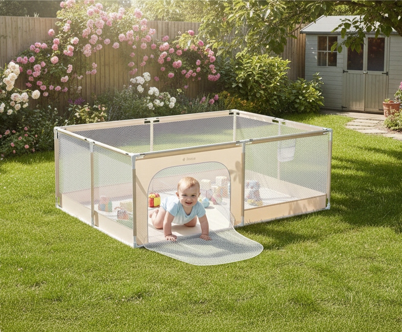Стінки манежу зроблені з повітряної сітки , що забезпечує достатній потік повітря та видимість дитини.