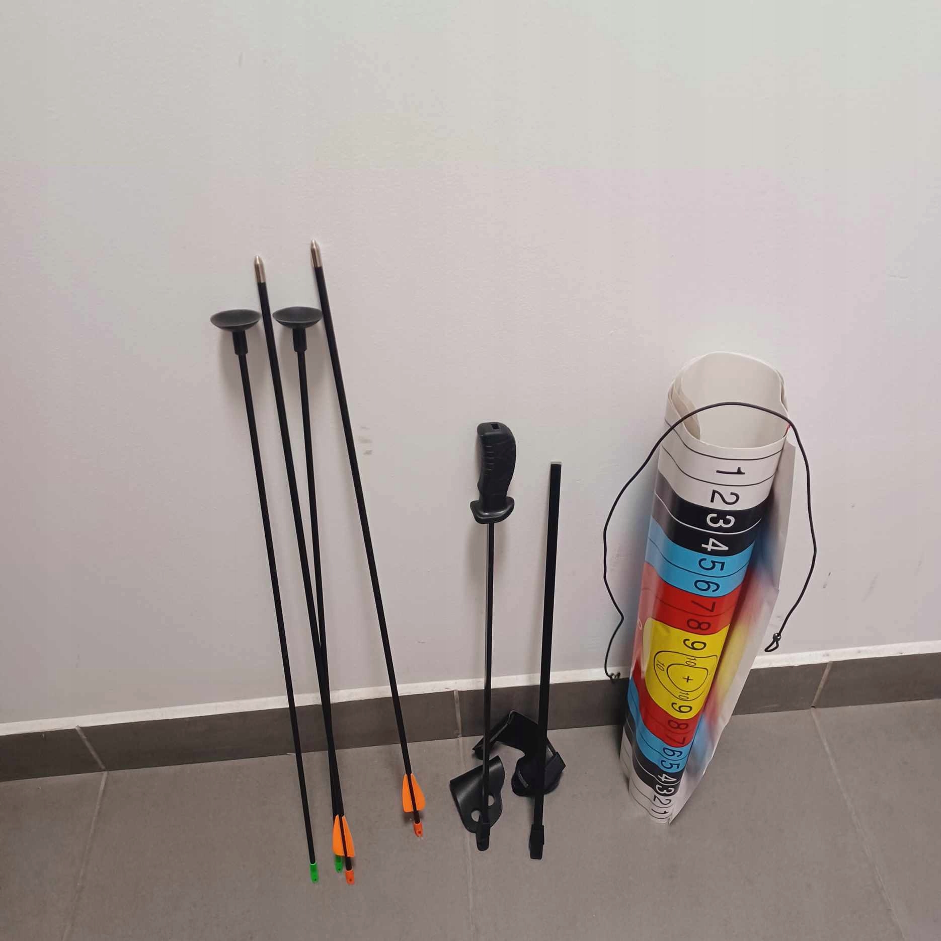 Увага!!! Лук + чотири стріли, виставкова іграшка для дітей, без пошкоджень, без оригінальних етикеток, з інструкцією по збірці англійською та картинками. Все це запаковано в потерту сіру картонну коробку.
