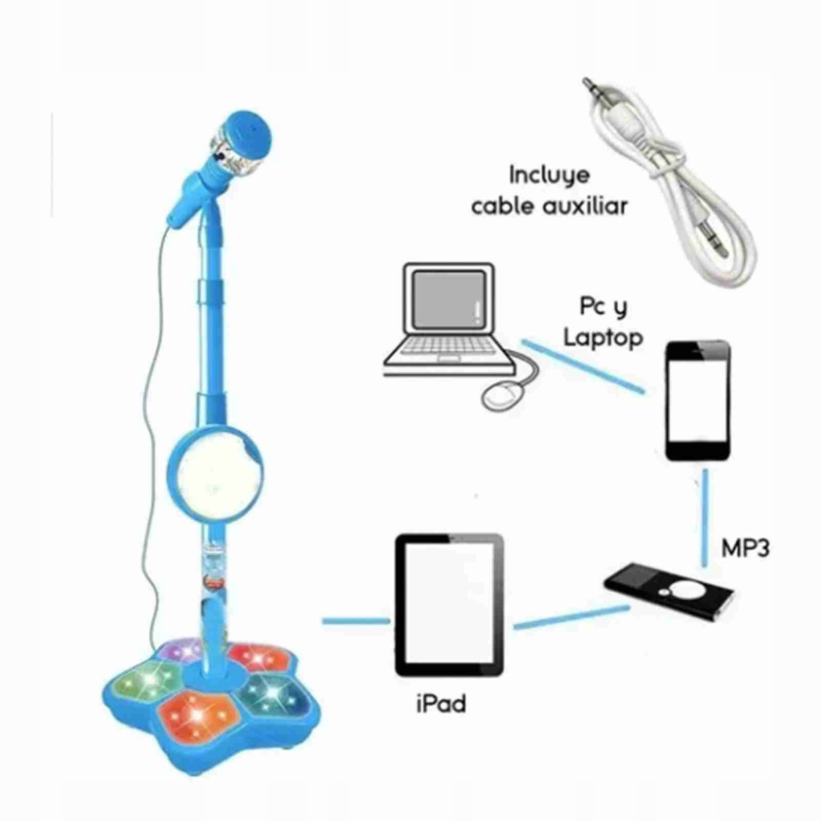 Дитячий мікрофон із вбудованими підсвічуваннями Пластиковий легкий дитячий мікрофон із підставкою синього кольору