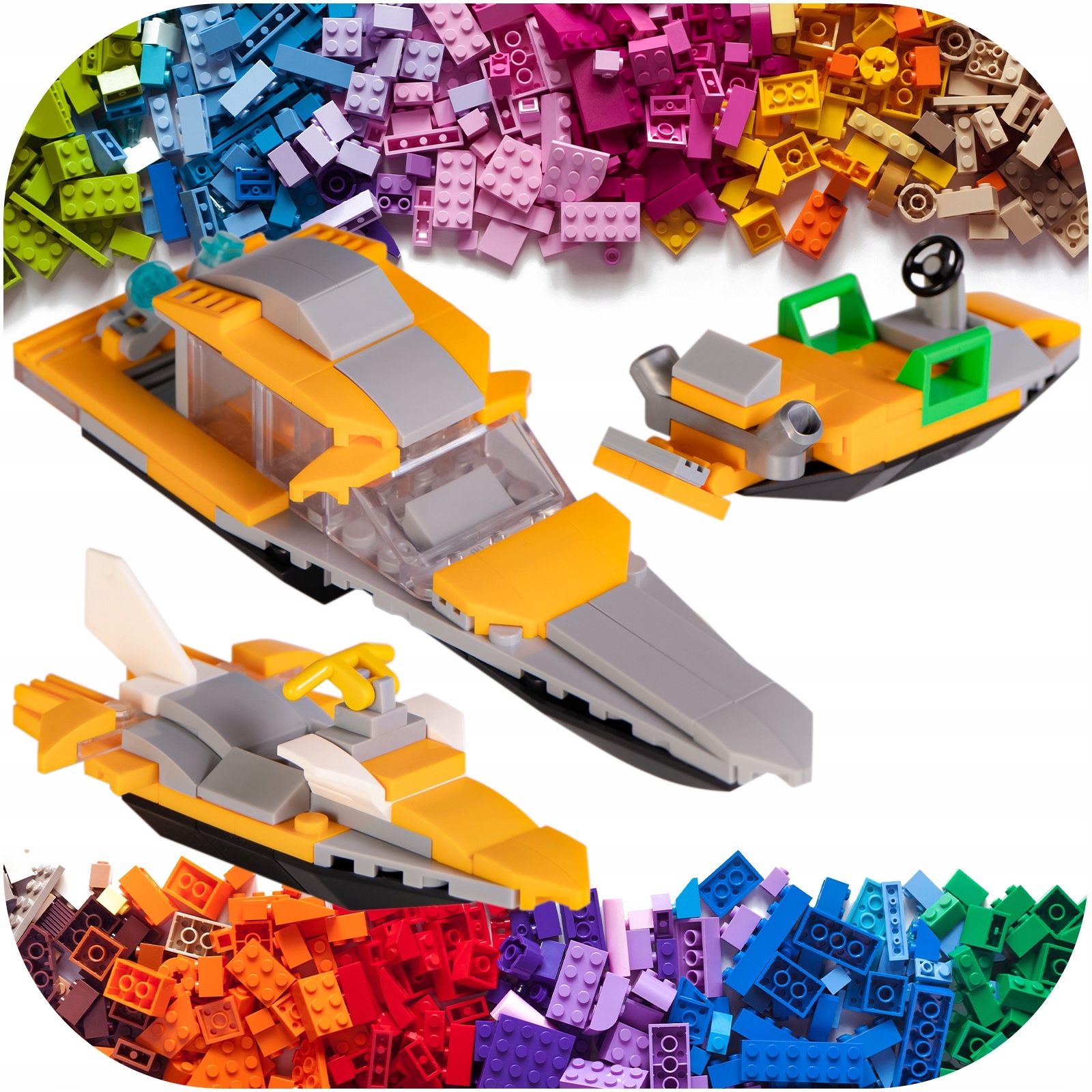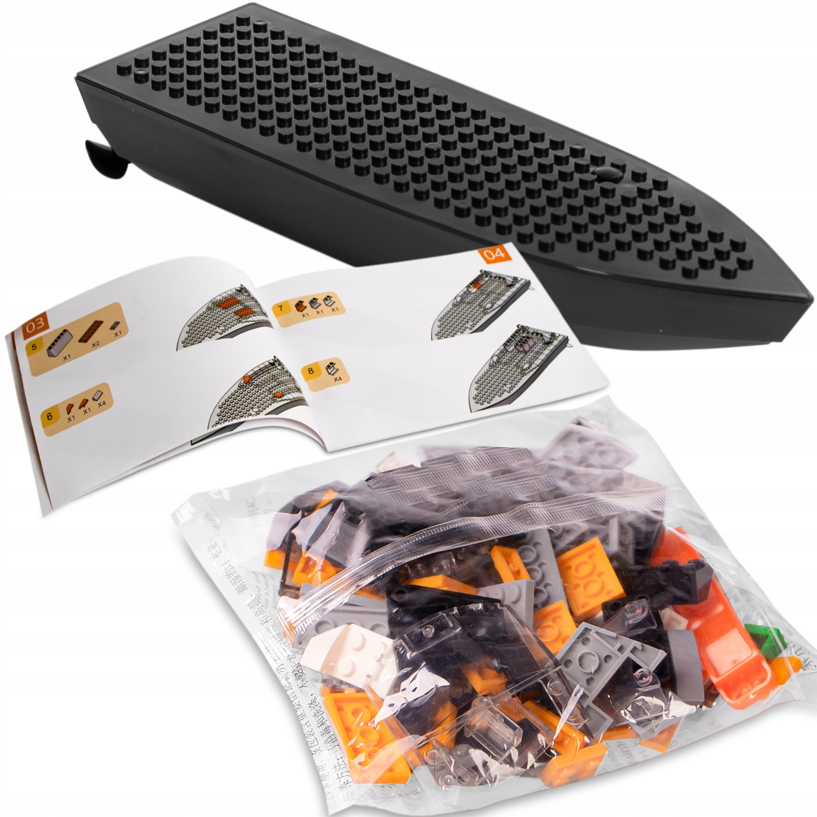 Човен (за винятком корпусу, у якому розміщено рушійний двигун) повністю побудовано з блоків. Це забезпечує виняткове задоволення та дає вам можливість вільно змінювати остаточну форму човна. Інструкція, що додається до набору, допоможе вам крок за кроком досягти ефекту, як на фотографіях.