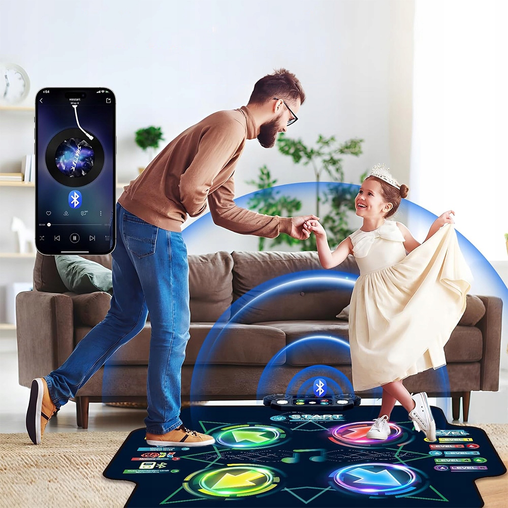 【4 режими】Танцювальний килимок із підсвічуванням дозволить вашим дітям займатися спортом у найцікавіший спосіб! Електронна танцювальна гра заохочує до співпраці та фізичної активності. Вбудований Bluetooth забезпечує більш різноманітний танцювальний досвід. 4 режими гри покращують взаємодію та співпрацю між батьками та дітьми. Веселяться і діти, і дорослі. Відкривайте разом із дитиною різні моделі!