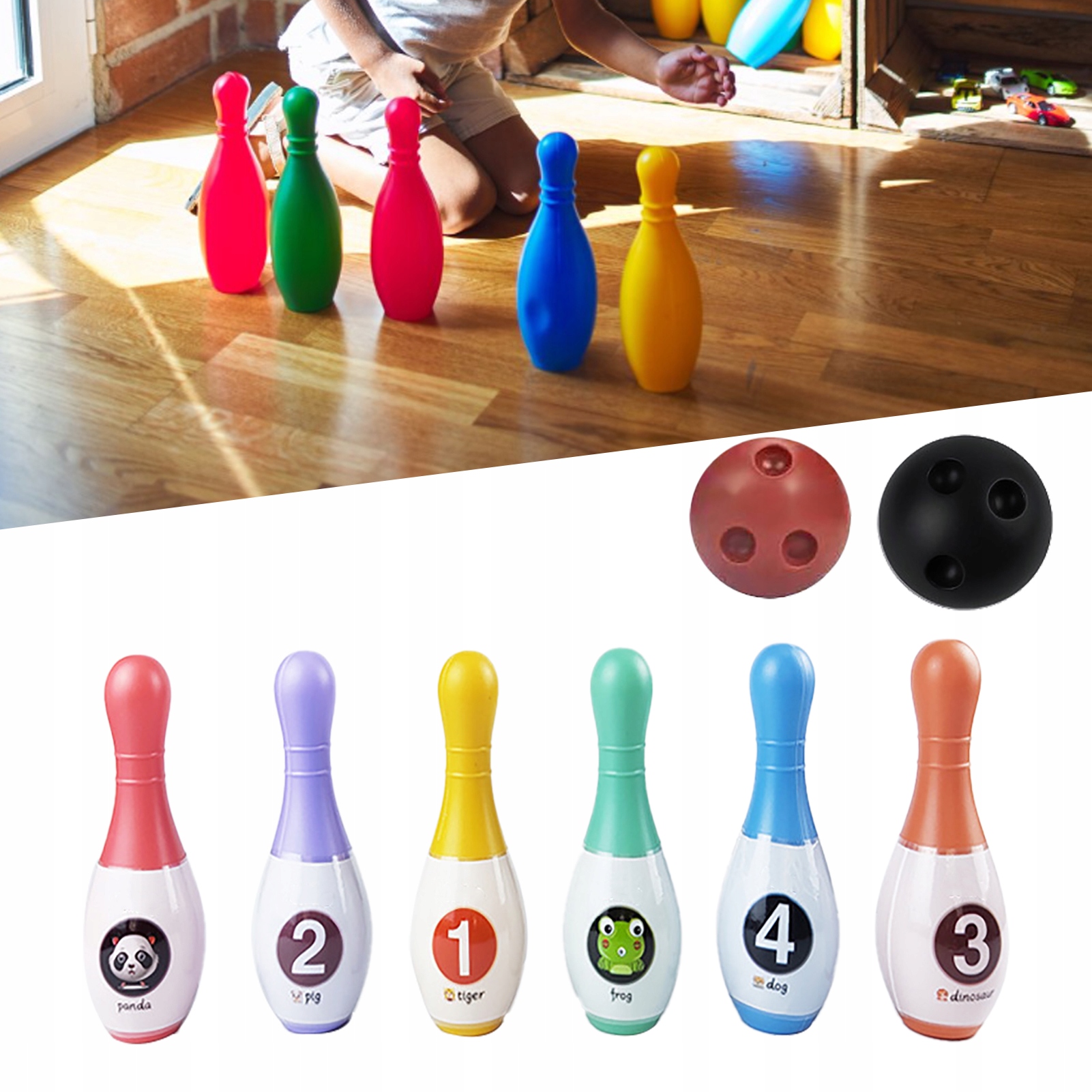 1. Веселий набір м’ячів для боулінгу для дітей: покращуйте спортивні здібності та координацію дітей за допомогою вправ у боулінгу в приміщенні, сприяючи здоровим фізичним звичкам.