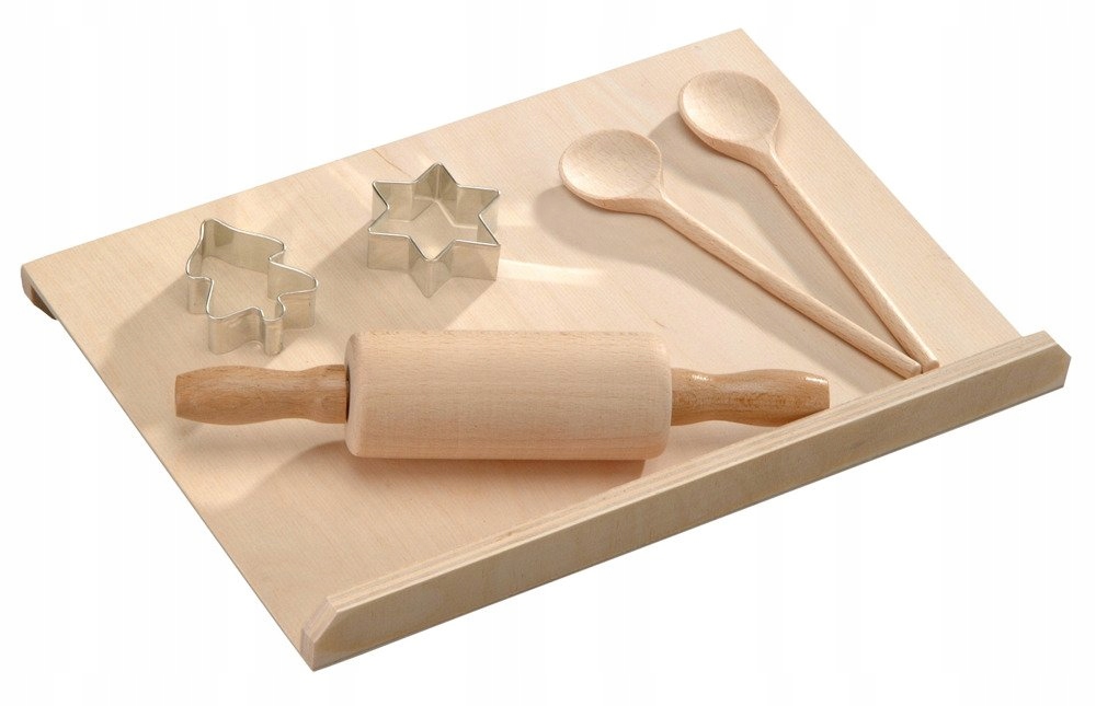 Дитячі аксесуари для випічки Kesper - це повний набір, що містить: кондитерську дошку, качалку, 2 формочки для печива та 2 дерев'яні ложки. З таким обладнанням можна сміливо починати пригода з випічкою. Також на обличчі!