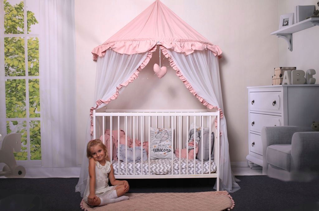 Наш балдахін-намет росте разом з дитиною, спочатку його можна використовувати як балдахін над ліжечком, а потім як ігровий намет і елемент декору кімнати.