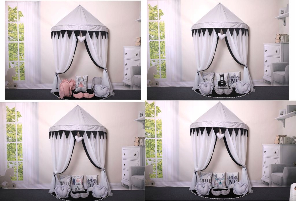 Велика перевага нашого намету в тому, що він не займає місця в кімнаті, як стандартний типі, його можна прикріпити після того, як дитина пограє.