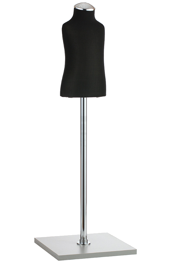 Опис: Дитячий пошитий манекен (розміри 62-74). Горловина оброблена хромованим ковпаком. Висота манекена регулюється. Загальна висота манекена, включаючи основу, макс. 130 см - мін. 110 см.