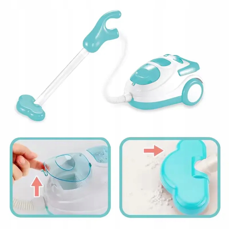 Чудова іграшка для вашої дитини, яка викладає незалежність. Це звучить як справжній пилосос. Це смокче кульки, що імітують сміття. Ця іграшка імітує справжній пилосос. Це робить ті самі звуки і смокче кульки, що входять до набору.