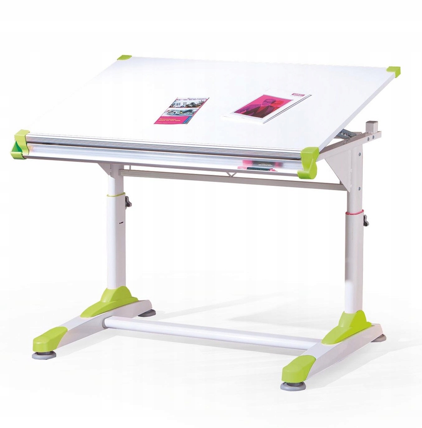 Парта COLLORIDO має регульовану висоту верхньої частини та кут нахилу, що забезпечує правильну поставу дитини під час роботи по дому. Зручність також забезпечується великою поверхнею стільниці, завдяки якій дитина може вільно малювати, писати, читати та малювати.