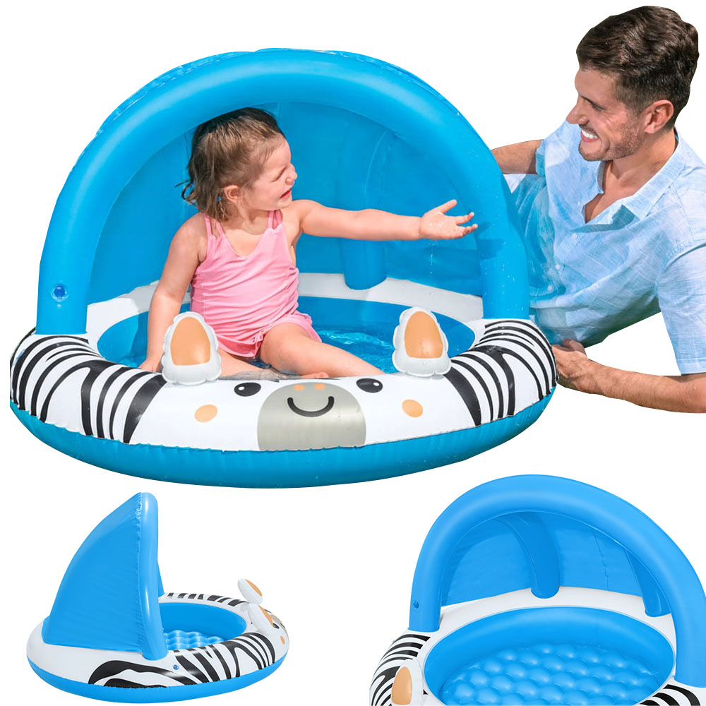 Надувний басейн з малюнком зебри Bestway - ідеальне рішення для найменших у спекотні літні дні, він дозволить вам познайомити та познайомити дитину з водою. Виріб дуже легко розкладається і надувається, а догляд за ним надзвичайно простий. Барвистий мотив усміхненої зебри зацікавить Вашого малюка, а балдахін із системою захисту Bestway UVCAREFUL захистить його від негативного впливу сонячних променів. М'яке дно забезпечує комфортну гру у воді. Завдяки невеликому розміру душовий піддон поміститься як на пляжі, в саду, на терасі, так і на балконі. Виріб призначений для дітей від двох років.