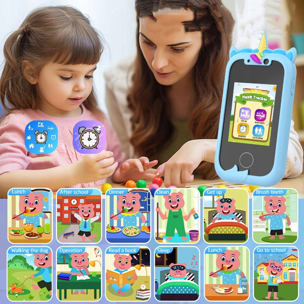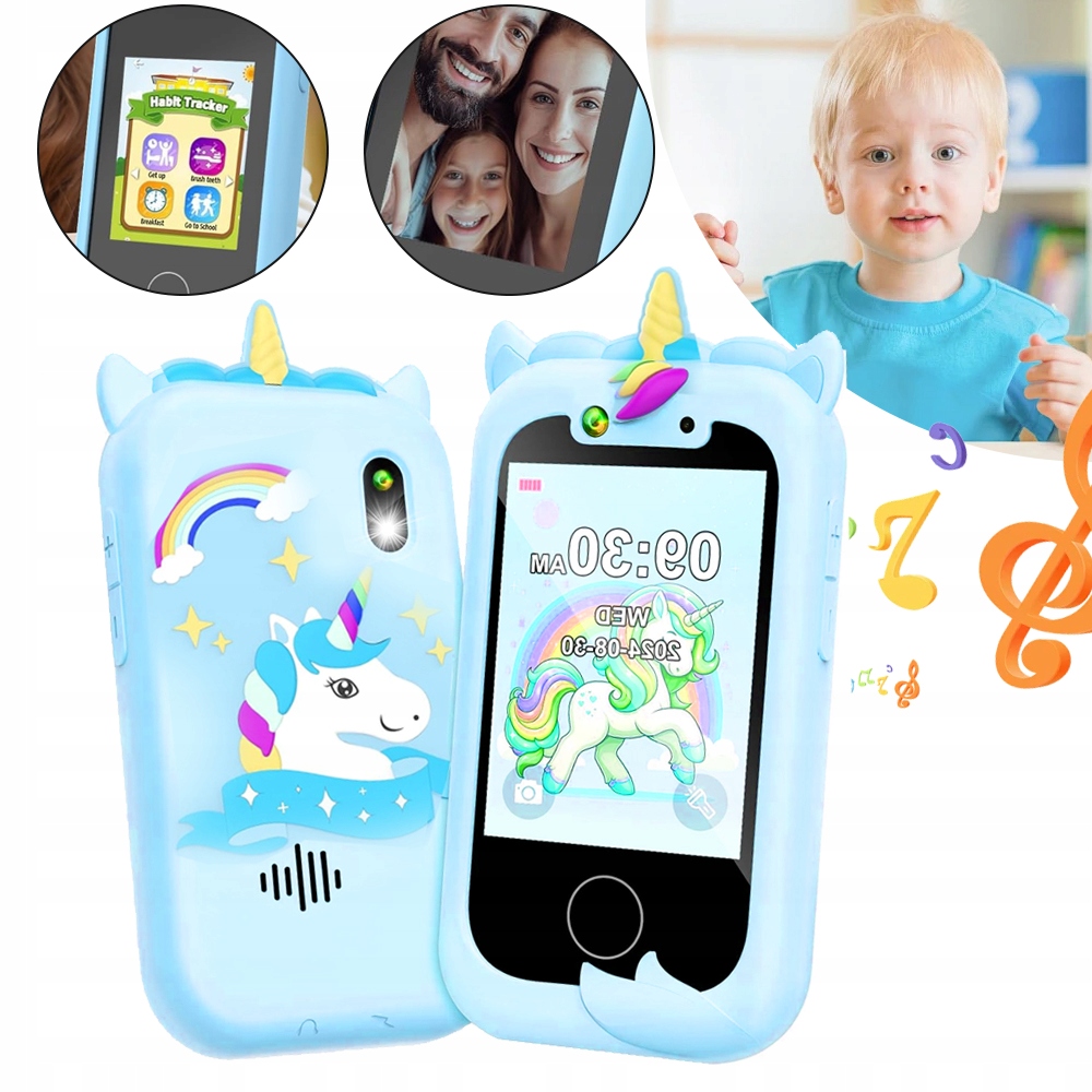 Іграшка для дітей оснащена 2,4-дюймовим сенсорним екраном IPS і має багато функцій, як справжній телефон. Діти можуть фотографувати та записувати фільми, слухати музику та казки та грати в ігри. Іграшка також може використовуватися як ліхтарик, будильник, калькулятор та календар. Цей телефон -не є нетоксичним, BPA, вільним від випромінювання та безпечної іграшки для дітей віком від 3 до 10, які завжди хочуть користуватися телефоном.