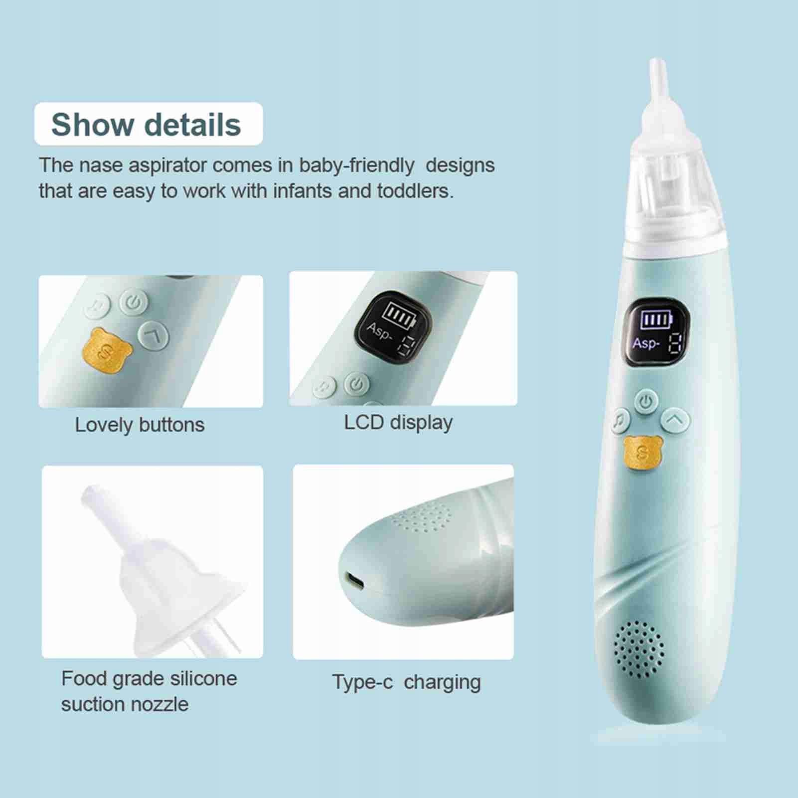 - 【Безпечна та ефективна】 Електрична дитяча присоска для соплів є обов’язковою для кожного батька. Привітайтеся з більш ефективним і зручним способом очищення носика вашої дитини. З нашим електричним очищувачем для носа ви можете бути впевнені, що вашій дитині буде легше дихати та краще спати.