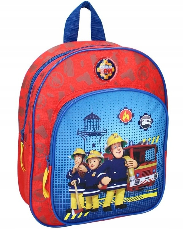 Дорожній рюкзак для хлопчика із зображенням Пожежного Сема підійде для дітей дошкільного та молодшого шкільного віку для подорожей. Рюкзак Fireman Sam має одне основне відділення та одну меншу передню кишеню, обидва застібаються на блискавку. Він має широкі ремені, які можна регулювати по довжині, і вушко для носіння в руці або підвішування. Розміри рюкзака 31 х 25 х 10 см.