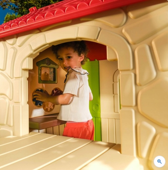 Садовий будиночок Deluxe також має поверхні, які можна мити, і стійкий до атмосферних впливів, що робить його придатним для використання як усередині, так і на вулиці.