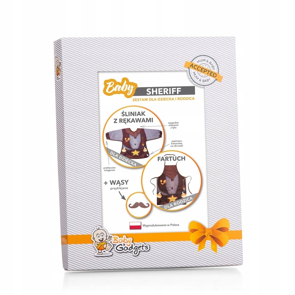 Легенда говорить, що в кожному пристойному місті завжди було не одне, а два шерифи: великі та маленькі. Він доглядав за замовленням і мало приділяв всю свою увагу, будучи зіркою кожної зустрічі. Якщо ви відчуваєте, що у вашої дитини є шериф, ви повинні спробувати набір, який змусить вас перетворитися на гармонійну команду, яка не жахливо, бореться за револьвери та плями після їжі. Комплект включає в себе кігет з рукавами для дитини, яка ідеально захистить одяг від плям після їжі. Зарештована крихта, практичні рукави та регульована зв'язок на шиї допоможуть у цьому. Але це ще не все. Набір також включає фартух для батьків чи іншого дорослого - бабуся, тітки чи няні, які супроводжують дитину під час їжі. І слина, і фартух виготовлені з матеріалу, що відображає рідини, тому навіть кидати чайну ложку, повну каші або виливання пиття не буде для вас не так страшно! Ми також прикріпили склеєні вуса, які ви можете прикріпити до дитячого сосу та використовувати для отримання дивовижних фотографій. Baby Sheriff - Біб та фартух - це аксесуари з мотивом шерифа, який практично сприятиме годуванню та додатково зробить вас просто чудово. Не забудьте сфотографувати загальну фотографію, яка, безсумнівно, зробить відчуття між друзями та родиною, а також буде ідеальною для повіслення на стіну. Два шерифи в рамці будуть унікальними сувенірами протягом багатьох років - навіть коли маленький шериф давно виросла і залишає свою сімейну власність. Цей набір є дуже практичним, але також геніальним подарунком для кожного молодого батька. Це чудово працює як подарунок для народження дитини, хрещення або як подарунок, який дається під час візитів. Це також оригінальний подарунок на рік або подарунок з нагоди щорічного навчання незалежної їжі.