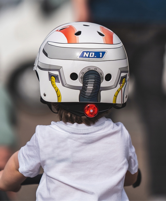 Безпека. Шолом має сертифікат CPSC (Комісія з безпеки споживчих товарів) і CE. При правильному носінні він захистить голову дитини під час падіння.