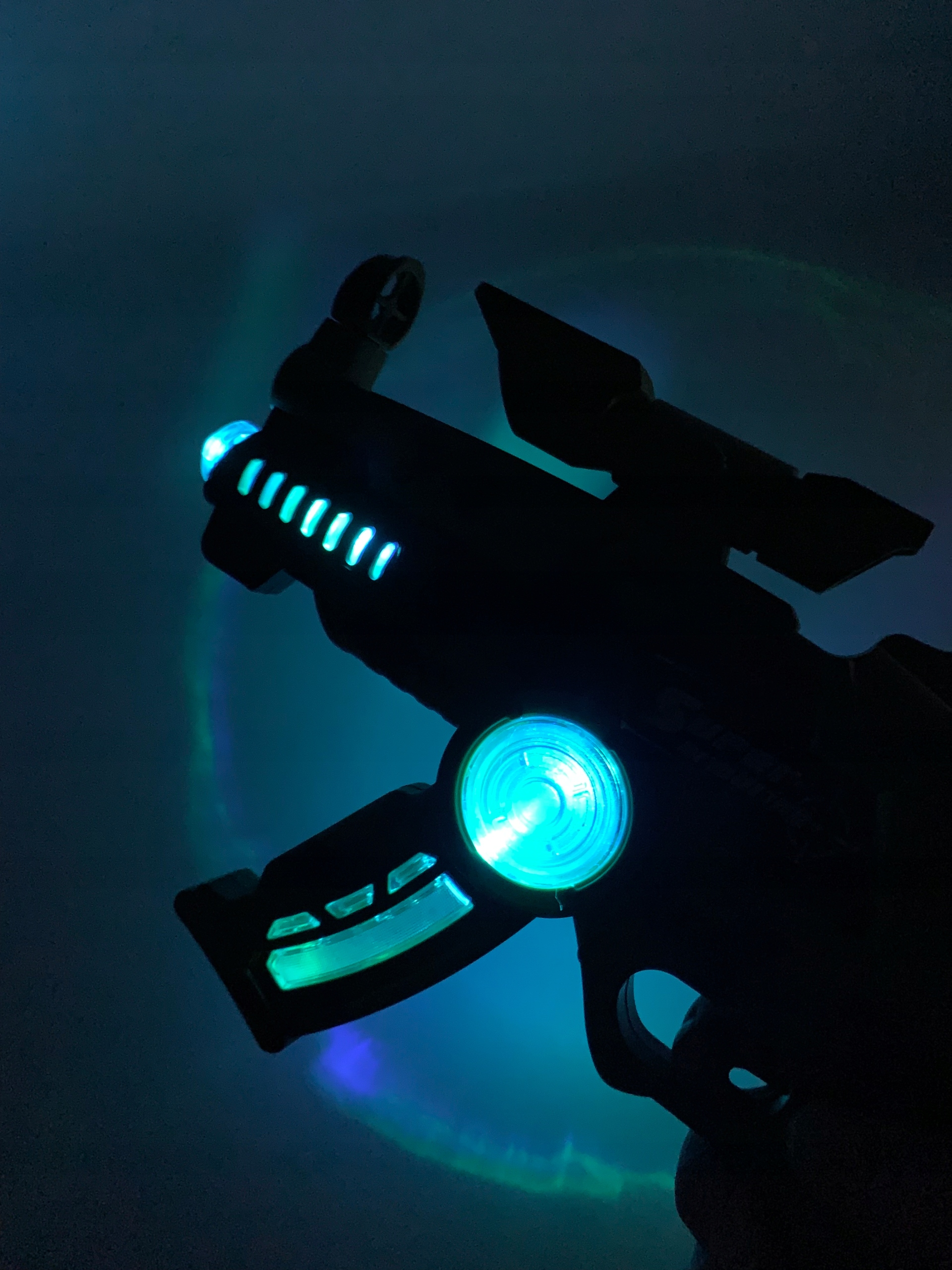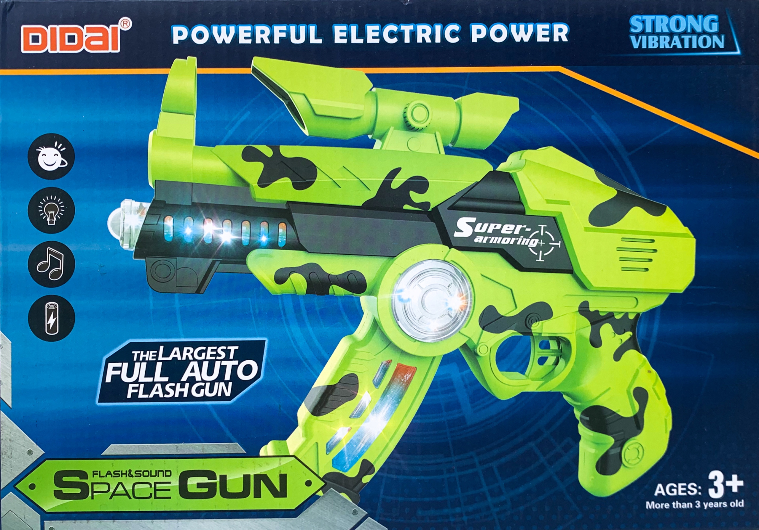 Зброя оснащена світловими ефектами, які додають реалістичності кожній грі. Діти будуть у захваті, коли їх рушниця світиться в темряві, створюючи дивовижну атмосферу під час гри.