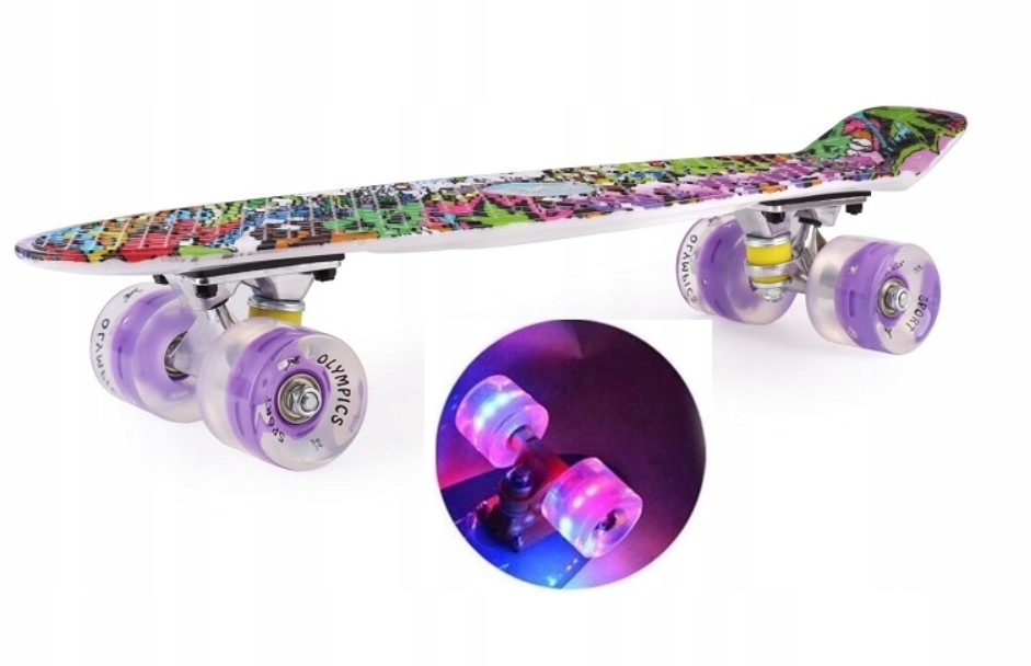 ⭐ СКЕЙТБОРД FISZKA, 56 СМ ЗІ КОЛЕСАМИ, ЩО СВІТИТЬСЯ