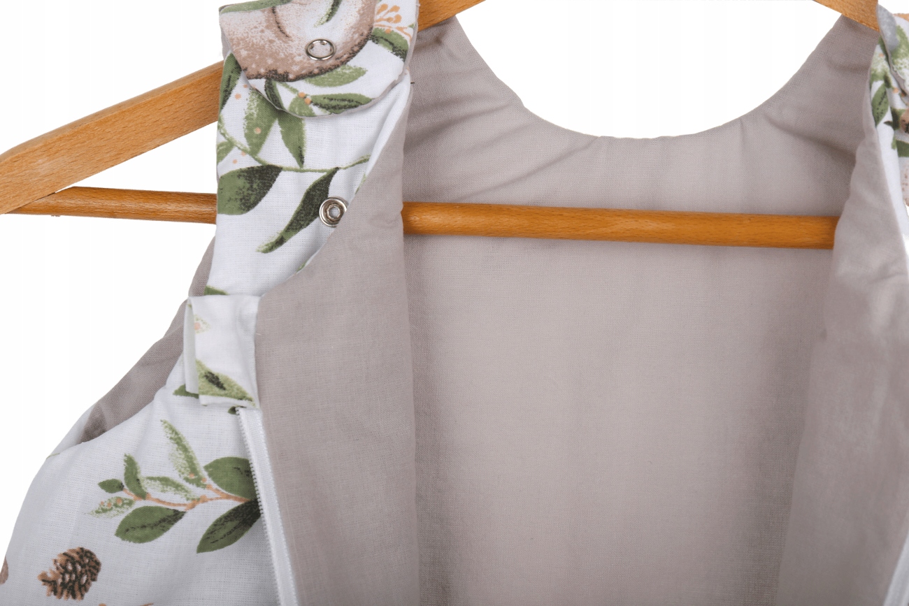 - Спальний мішок застібається двома кнопками на плечах, завдяки чому може «рости разом з дитиною» і служити дуже довго.< /li>