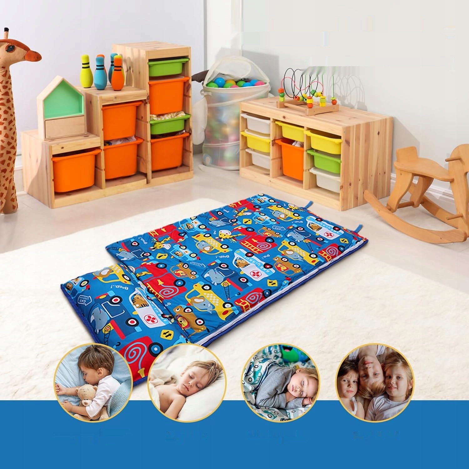 Багатофункціональність: спальник можна використовувати як вдома, так і на вулиці. Незалежно від того, чи це кемпінг, подрімати в дошкільному закладі, ночувати далеко від дому чи подорожувати, спальний мішок є ідеальним і зручним вибором. Синій візерунок із машинками подобається дітям, і він підійде як подарунок на день народження чи Різдво.