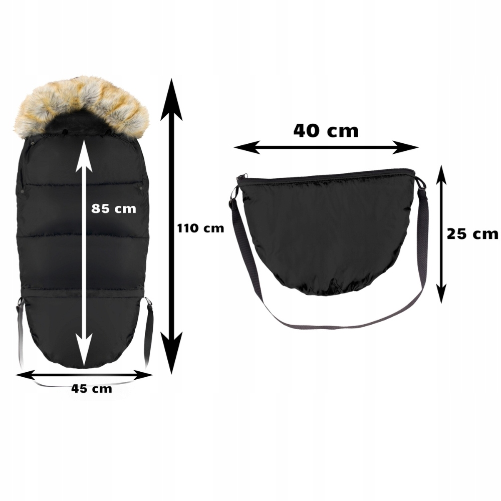 ❤️ КОМПЛЕКТ СПАЛЬНИК З ХУТРЯНИМ ЧОХАЛОМ ДЛЯ КОЛЯСКИ, ПРОГУЛЯННЕ СИДІННЯ, САНИ ДЛЯ ЗИМИ, ЧОРНИЙ 2.5 TOG + СУМКА + STARKY