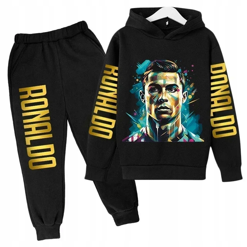 Спортивний комплект RONALDO з двох частин - худі + штани - ідеальна пропозиція для хлопчиків і дівчаток навесні та восени. Виготовлений з легкого та повітряного поліестеру, ідеально підходить для школи, навчання, ігор на свіжому повітрі або як зручний повсякденний одяг.
