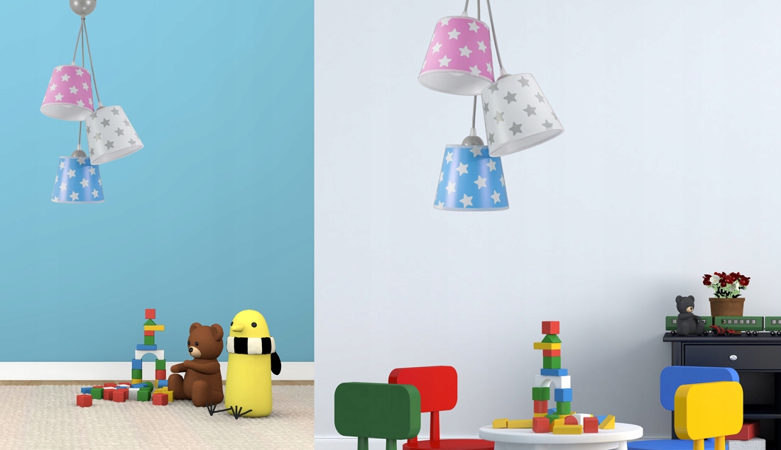 Кольори стельового світильника дозволяють встановити його як у кімнаті хлопчика, так і в кімнаті дівчинки.