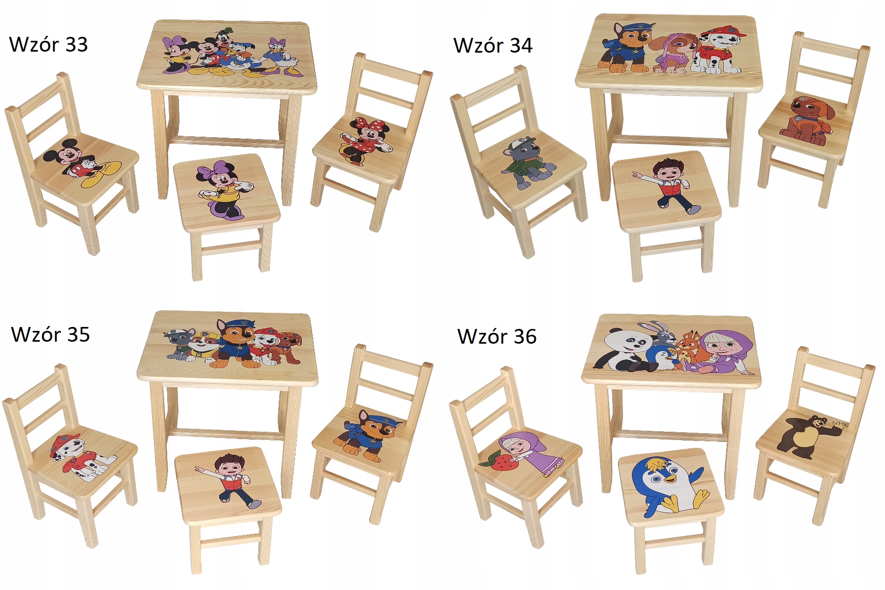 Готуючи дитячі меблі для ваших дітей, ми створюємо продукцію, перш за все зручну у використанні та безпечну. Цим характеристикам відповідають наші стільці та столи для дітей. На перший особливо впливає використання найкращих натуральних матеріалів, таких як деревина сосни, а також регулювання висоти виробу відповідно до віку дитини. У свою чергу, безпека меблів пов'язана в першу чергу з усуненням будь-яких країв, які можуть становити загрозу для дитини. Тоді будь-який вплив матиме набагато менші наслідки. Адаптуючи нашу пропозицію до бажань та інтересів найменших клієнтів, ми підготували варіанти столів та стільців, розписаних за мотивами улюблених казок. Казкові мотиви надруковані сучасним методом друку, зображення міцні, стійкі до подряпин і миються. Пропорції набору підібрані для дітей віком від 1 до 5 років залежно від росту дитини. Набір поставляється цілим і не вимагає складання. Весь набір захищений екологічним лаком для дерева.