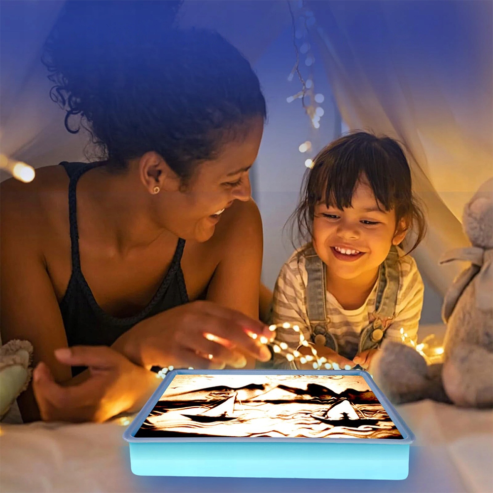 ДИТЯЧИЙ СТІЛ ДЛЯ МАЛЮВАННЯ ПІСКОМ LED 7 КОЛЬОРІВ РОЗВИВАЙТЕ СВІЙ МОЗОК