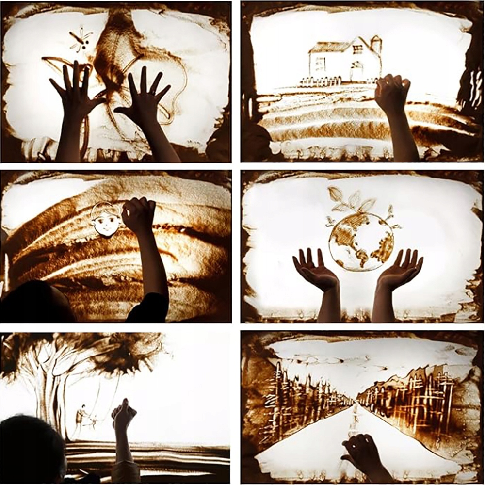 - Діти використовують свої пальці, щоб маніпулювати гладкою поверхнею піску, потрапляючи у світ тактильних відкриттів. Творчість — це процес самовираження, який допомагає розвивати ручні навички, творчість, уяву та дрібну моторику. ⛰️ Багатофункціональні варіанти гри та легка організація: