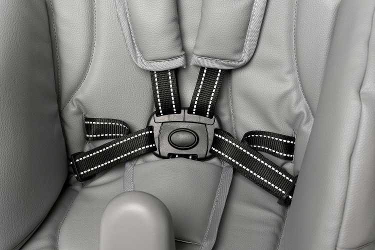 - Для безпеки дитини крісло оснащене 5-ти точковими ременями з накладками на плечі та додатковим елементом, що захищає від вислизання з крісла.