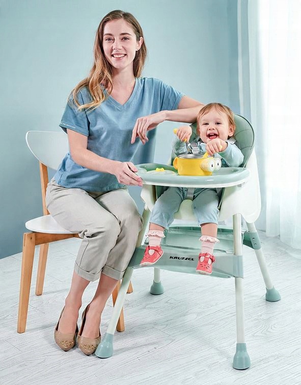Стільчик для годування 3в1 KRUZZEL - ідеальне рішення для щоденного харчування вашої дитини. Крісло легке, м'яке і зручне у використанні. Крісло підійде для дитини 6 місяців. Має знімну оббивку з практичної екошкіри, яка легко чиститься і зручна у використанні. Стільниця має 3 рівні регулювання відстані і знімний піднос. Додаткова перевага: 4 нековзкі ніжки з відповідною відстанню, що забезпечує стійкість крісла. Додатковий профільований елемент безпеки між ніжками, що запобігає вислизанню дитини з крісла