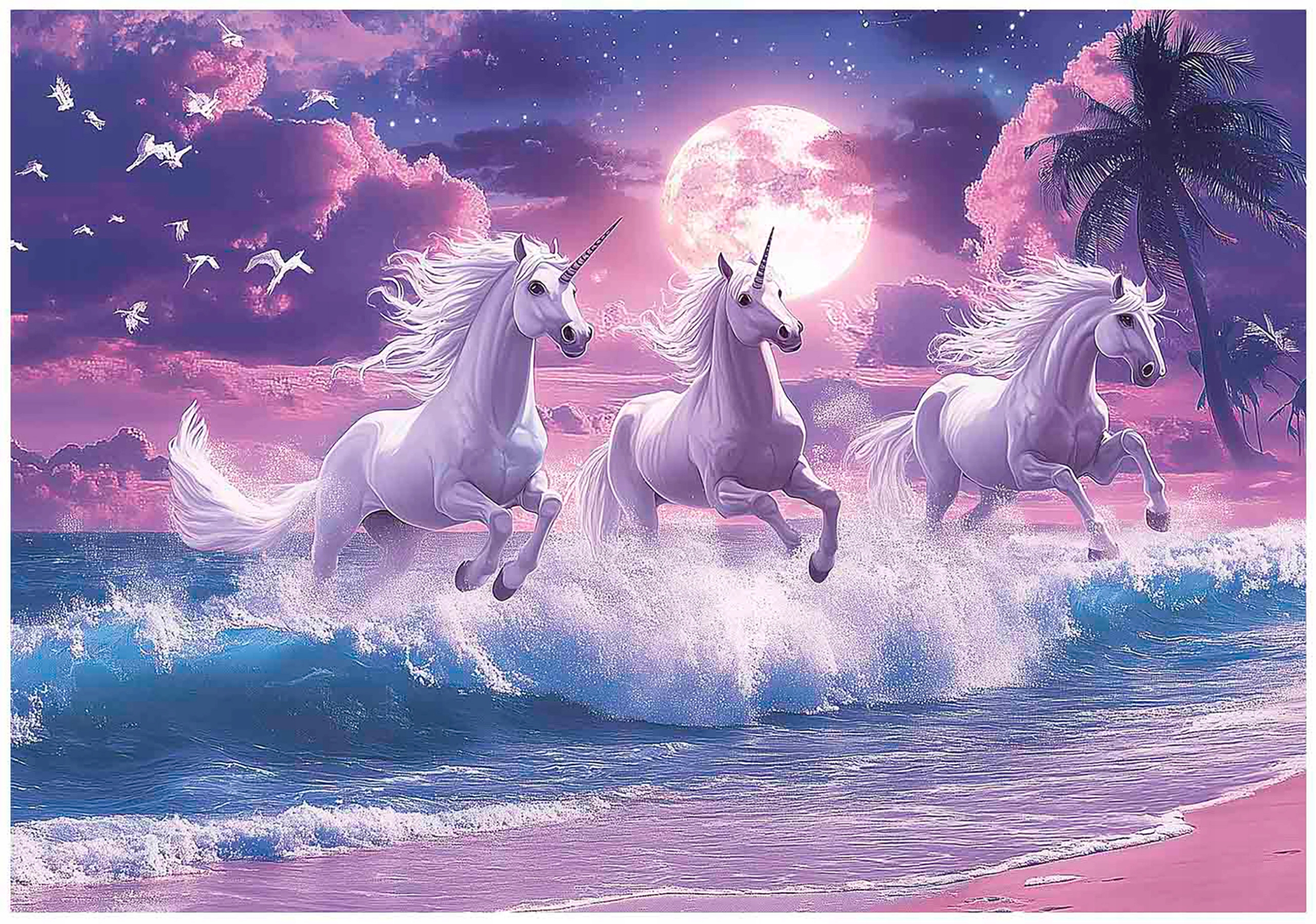Настінна фреска для дітей з єдиноріг на пляжі для коней для дитячої кімнати 400x280