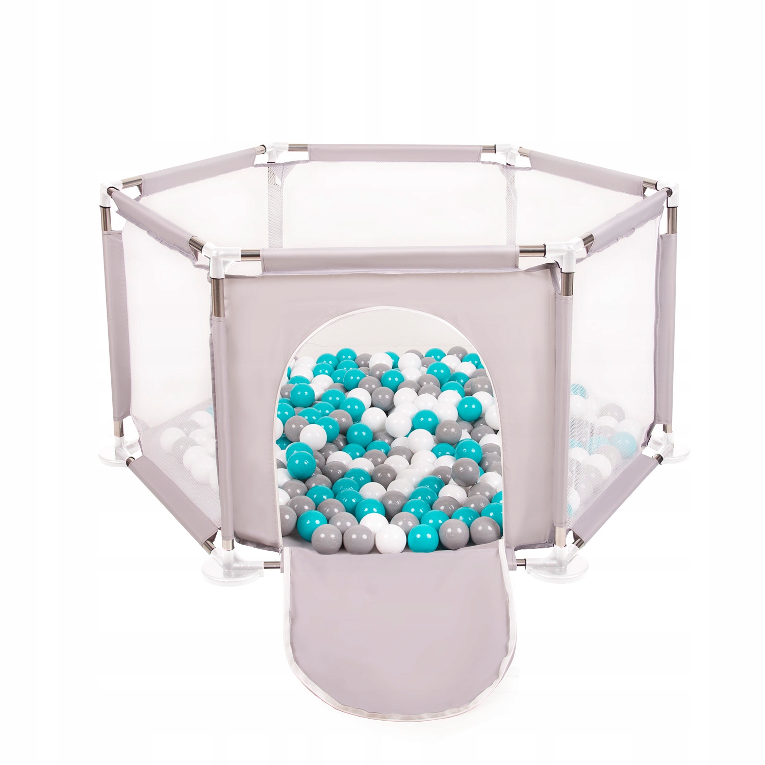 KS-100X-02-GREY Selonis Складний шестикутник KS-100X з м'ячами 6 см сірий: сіро-білий-бірюзовий 63x64/400 м'ячів Іграшковий манеж
