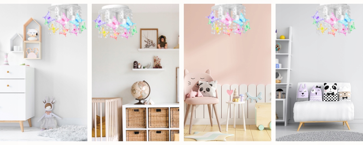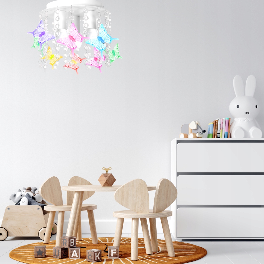 Лампа Elza — це триточкова стельова лампа, призначена для чарівних дівочих кімнат. Він чудово висвітлить всю кімнату та порадує око маленьких принцес. Він прикрашений різнокольоровими деталями у вигляді метеликів і кристалів, які додатково красиво розсіюють світло. Люстра має класичну різьбу E27, тому підходить до більшості доступних лампочок.