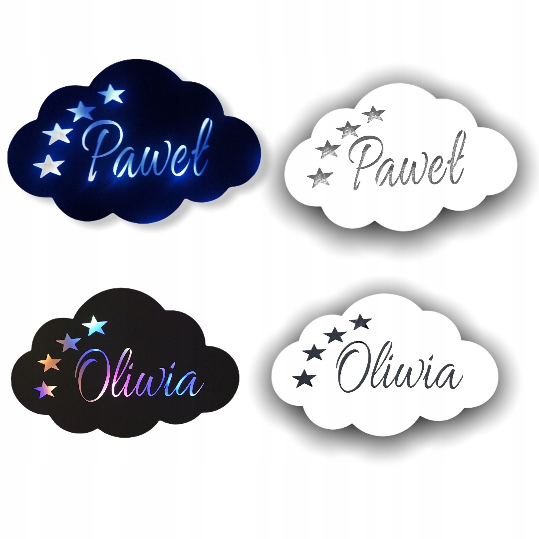 Красивий світлодіодний нічник З ІМЕНЕМ ДИТИНИ у формі хмари з невеликими зірки.