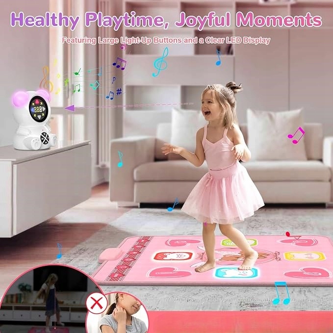 Acelufly - Дитячий танцювальний килимок | Рожевий | Bluetooth | 5 режимів гри | світлодіод | USB зарядка | Подарунок для дівчаток 3–12 років