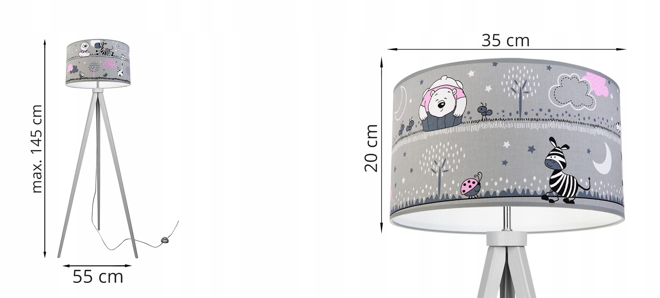 Унікальний світильник, який додасть неповторного характеру вашому інтер'єру. Освітлення чудово доповнить дитячу кімнату. Висота світильника 145 см. Лампа живиться від найпопулярнішого типу ламп E27 з максимальною потужністю 60 Вт.