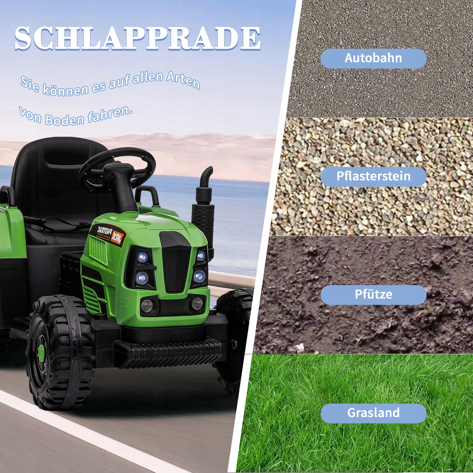 Реалістична модель сільськогосподарського транспортного засобу: створена за моделлю фактичного виробництва сільськогосподарської техніки. Виглядає як справжня модель. Маленький водій може легко їхати вперед на 3 швидкостях. Цей дитячий автомобіль є ідеальним подарунком для дітей віком від 37 до 72 місяців.