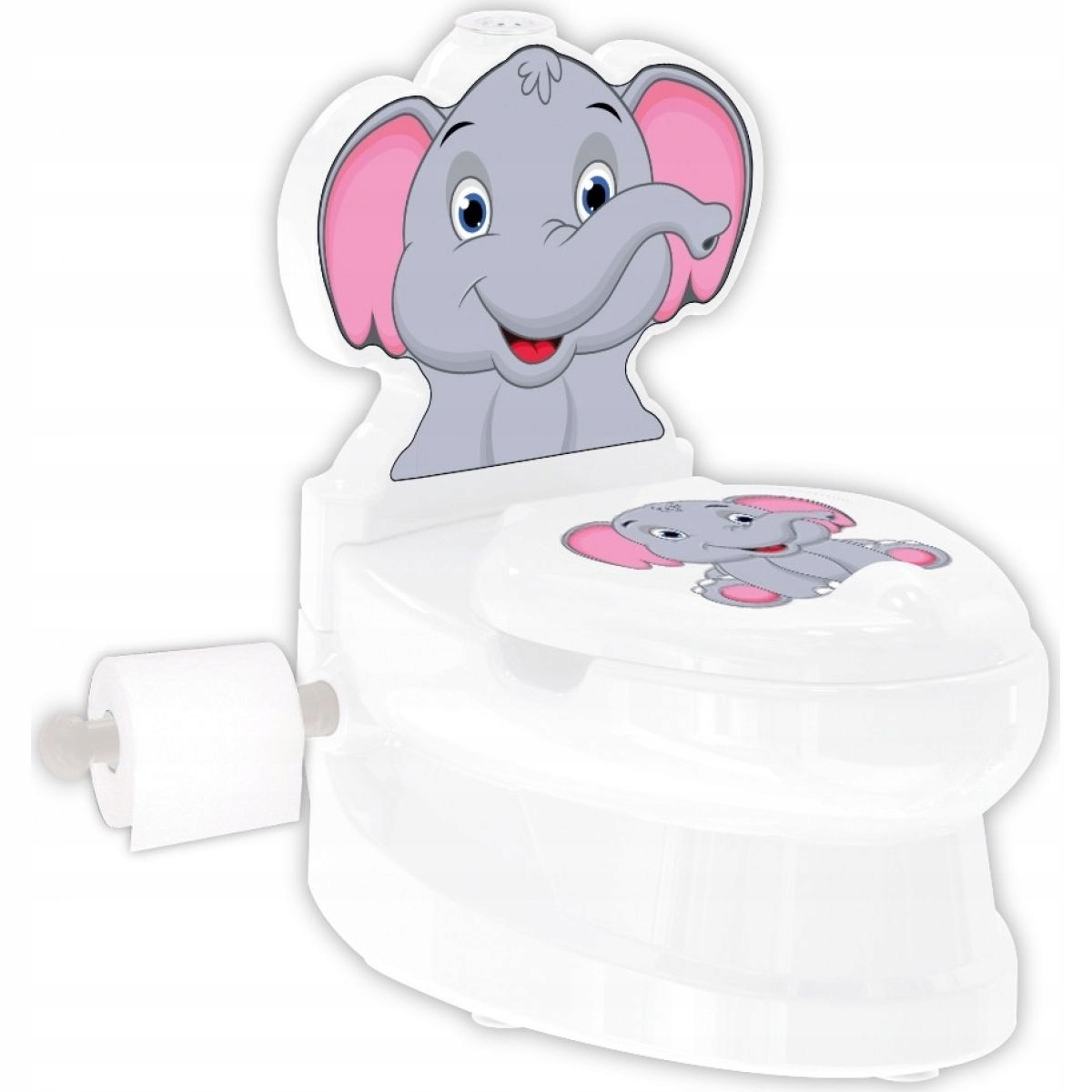 Білий горщик із зображенням слонау вигляді унітазу. Це зручний перехід між горщиком, який стоїть на землі, і використанням великого унітазу в подальшому житті.