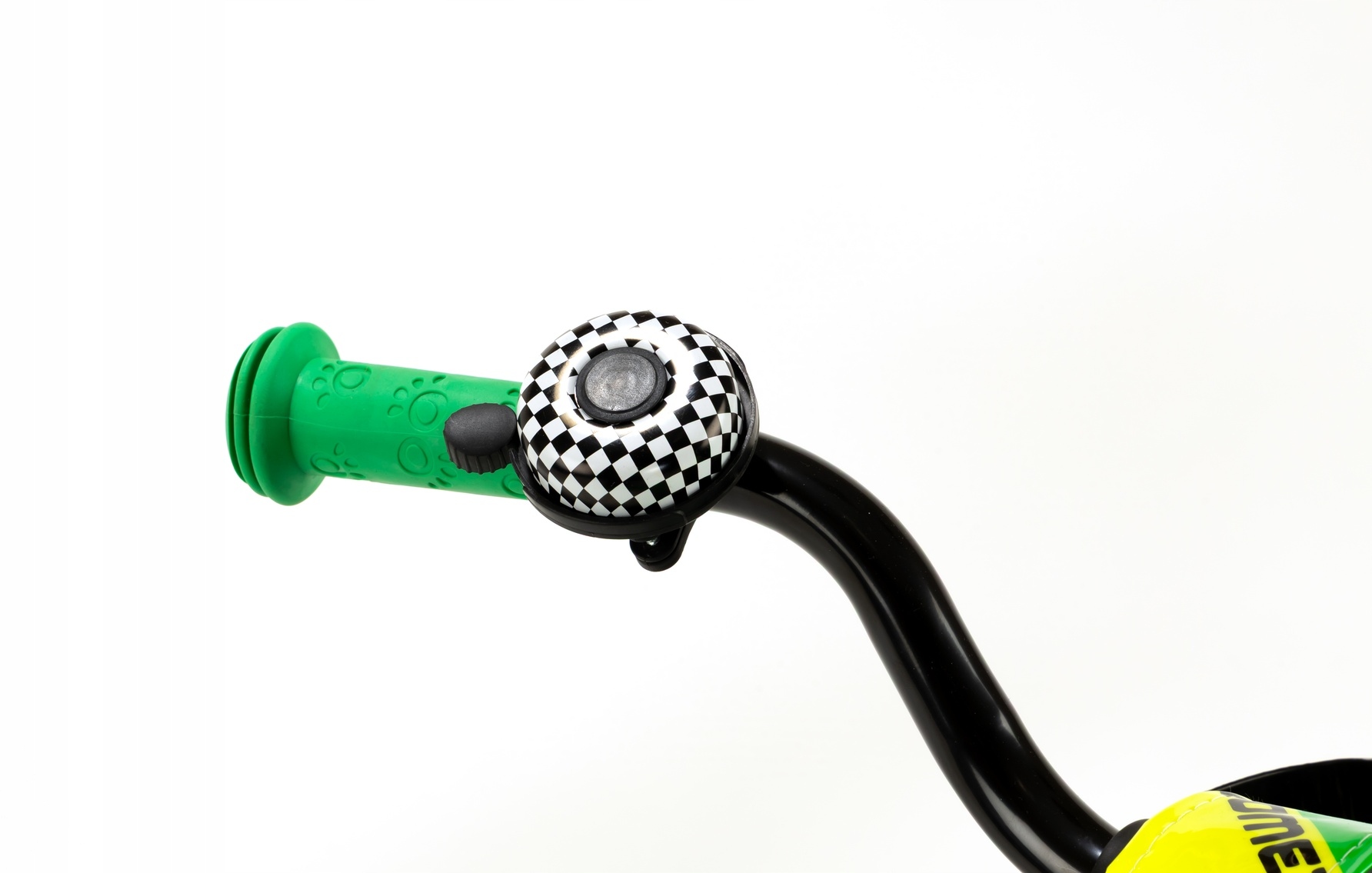 bell: Велосипед оснащений дзвоном, який забезпечує безпеку під час руху. Завдяки дзвону дитина може сигналізувати про свою присутність на дорозі, що збільшує безпеку на вулиці та в парку.