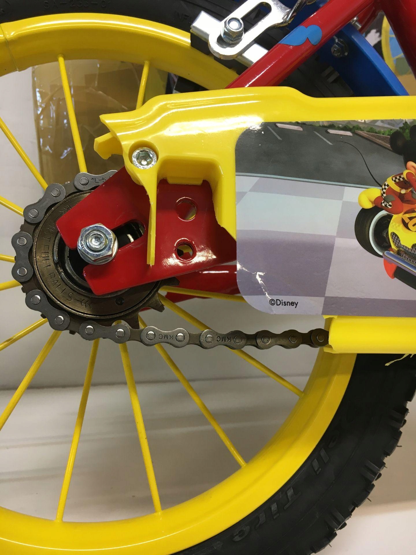 14-дюймовий дитячий велосипед Міккі Маус був спеціально розроблений для супроводу дітей віком від 3 до 5 років у світі двоколісних. 14-дюймовий велосипед є стабільним і безпечним завдяки знімним бічним валикам, закріпленим шинам з повітряною камерою та безпекою завдяки передньому та задньому затисканню гальм