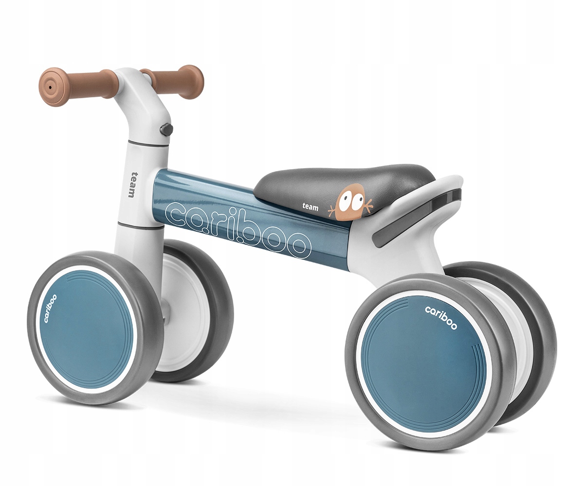 Cariboo Team — це чотириколісна версія велосипеда для їзди. Пропозицію оцінять батьки дітей, яким ще важко кататися на триколісному велосипеді чи класичному велосипеді-балансірі. Поїздка стабільна та безпечна. Для більшого комфорту малюка велосипед оснащений регульованим кермом з приємними на дотик ручками.