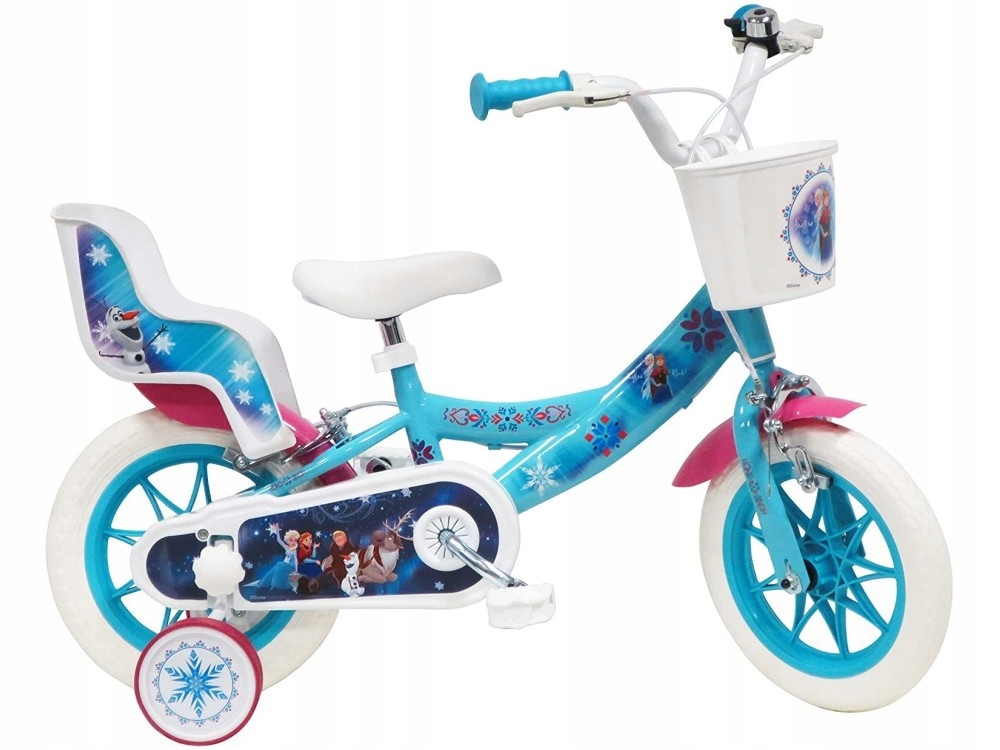 Гарний велосипед для дівчаток віком приблизно 2,5 роки з мотивом казки "Крижане серце". Оснащений бічними колесами та опущеною рамою, дитина може легко сідати та виходити з велосипеда. Велосипед стійкий і витривалий, має два V-brake, які забезпечують адекватне гальмування. Кермо з ручками з коміром забезпечує гарне зчеплення та запобігає ковзанню рук. Кошик спереду доповнює образ.