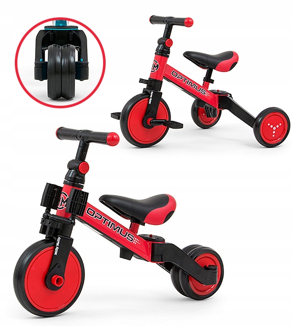 Optimus був розроблений, щоб стати одним із найкращих варіантів для першого автомобіля вашої дитини. Завдяки стійкій триколісній конструкції забезпечує дитинівідповідний рівень безпекиі полегшуєосвоєння нових навичок. Коли дитина опанує основи їзди, ми можемо додати педалі або перетворити його на класичний балансир.