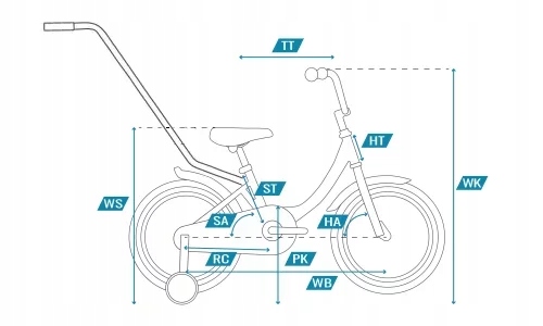 Параметр 12" 14" 16" 18" 20" Зріст користувача [см] 80–100 95–110 105–115 110–120 115–130 ST – довжина підсідельної труби [мм] 220 240 250 280 280 WB – колісна база [мм